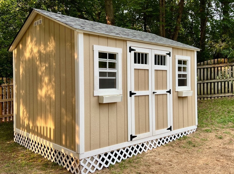 10x12 Shed, Transom Windows, Bottom Trim, Flower Boxes, Skirting
