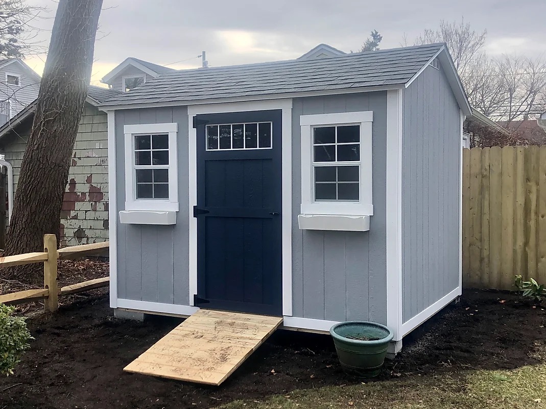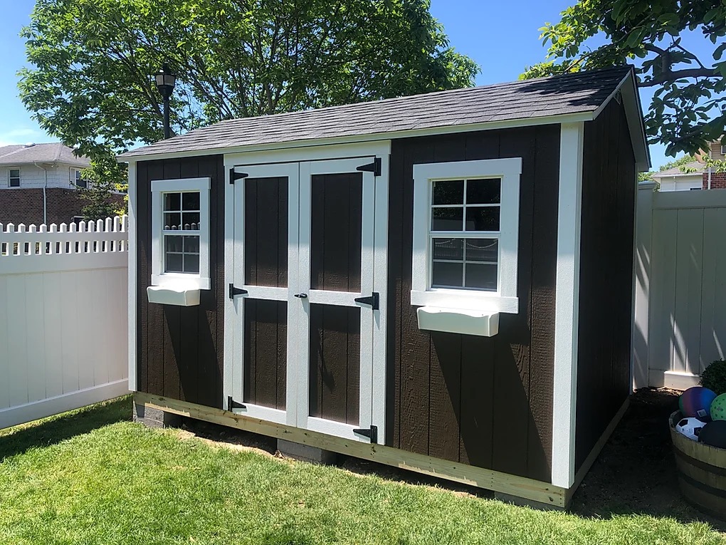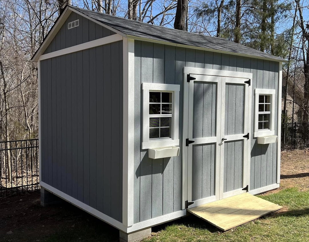 10x12 Shed Custom Paint, Tall Walls, Ramp, Flower Boxes, Bottom Trim